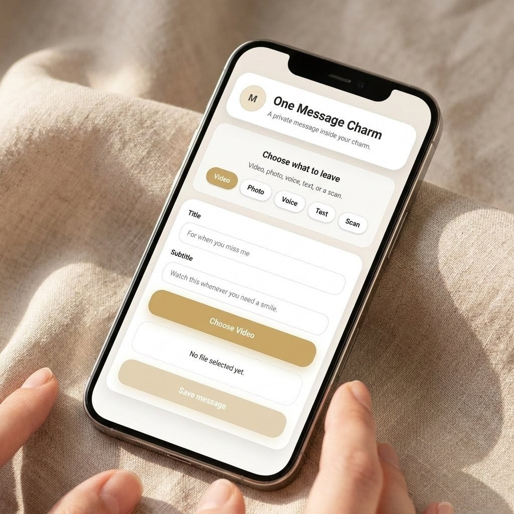 A charm that reveals a voice note, video photo message or scanned letter from someone you love and care about.
